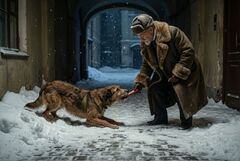 Прогнав шакала, Билл увидел нетронутый мешок с ветчиной и понял, что все четыре дня Чинк ничего не ел, а щенок, дрожа от усталости, лизнул ему руку. Старый Билл прослезился, накормил Чинка и торжественно пообещал никогда не оставлять его надолго одного.