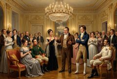Княгиня со всеми оживлённо беседовала и призналась, что переживает за мужа, который уезжал на войну. Тем временем фрейлина распоряжалась гостями, как опытный метрдотель, а в её салоне, как в ткацкой мастерской, фабриковалось общественное мнение.