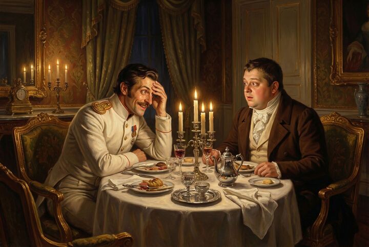На вечере у Анны Павловны он держался холодно и отстранённо, но теперь, рядом с другом, он расслабился и его глаза горели.