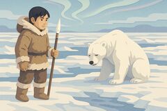 Все взрослые понимают, что это плавание устроено специально для Кириска. Они по-доброму шутят над мальчиком, проверяя его храбрость и готовность стать охотником. Наконец, они подплывают к первому острову, на котором расположено лежбище нерп — их добыча. Кириск в первый раз стреляет из ружья и промахивается. Он огорчён, но взрослые его не укоряют. «С первого выстрела никто не становится охотником», — утешает мальчика Мылгун.