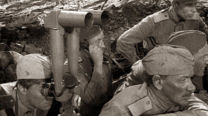 С помощью стереотрубы лейтенант Мотовилов с двумя рядовыми ведут неусыпный контроль над местностью и докладывают обстановку на тот берег командиру дивизиона Яценко для корректировки действий тяжёлой артиллерии. Неизвестно, будет ли наступление с этого плацдарма. Оно начинается там, где легче прорвать оборону и где для танков есть оперативный простор. Но бесспорно, что от их разведданных зависит многое. Недаром немцы за лето дважды пытались форсировать плацдарм.