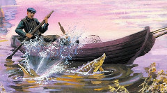 Верх берёт азарт рыболова, и Андрей Андреич приказывает лезть в воду своему кучеру Василию. Даже вмешательство четвёртого мужика ни к чему не приводит — налим засел глубоко. Барин решает сам взять ситуацию под контроль и присоединяется к охотникам за налимом, но и это ни к чему не ведёт. Наконец плотник Любим решает подрубить корягу. Подрубив укрытие налима, Андрею Андреичу удаётся схватить его за жабры. Голова здоровенной рыбины поднята на поверхность, радости рыбаков нет предела. Неожиданно их добыча бьёт хвостом и снова оказываясь на свободе. Все растопыривают руки, но уже поздно — налим ушёл.