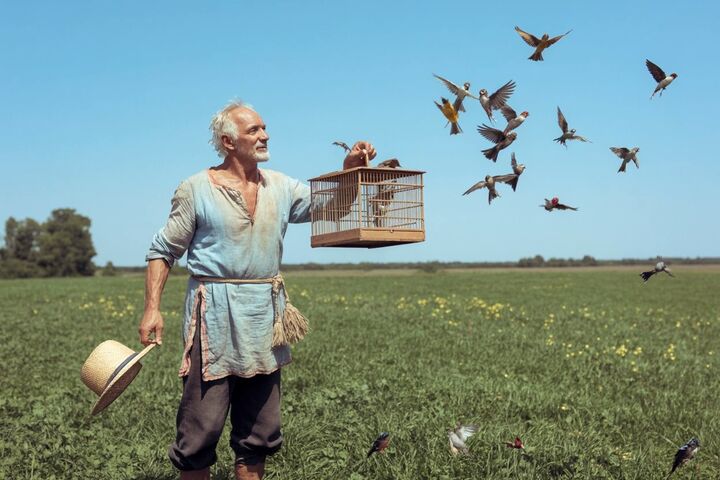 Старик снимал комнату у одинокой женщины и поначалу помогал ей по хозяйству, но потом у него появилось странное увлечение: он покупал на рынке у местных мальчишек пойманных ими птиц и отпускал их на волю за городом.