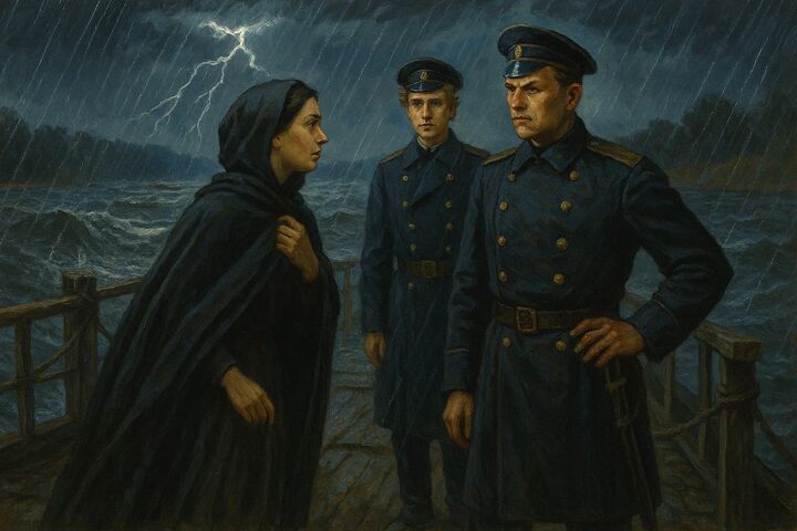 Пора-Леонович заявил, что генерал запретил переправлять кого бы то ни было по ночам, да и опасно делать это во время грозы. Женщина умоляла его, объясняла, что каждый час ожидания для осуждённого — это дополнительные муки. Горев, тронутый её отчаянием, предложил сам переправить женщину, но Пора-Леонович напомнил ему о его ране и запретил.