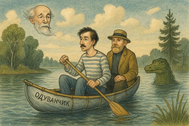Устав восхищаться скульптурной группой Орлова, компания переключилась на лодку и начала придумывать «самое лёгкое в мире название». Перебрали множество «лёгких» слов: пена, пух, эхо, бабочка и даже ау. После долгого спора рассказчик назвал лодку «Одуванчик».
