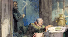 Доктор Гольдберг увлекает Андрея Ильича за стол. Соседом Боброва оказывается Андреа. Он пьян. Только полгода спустя стало известно, что этот трудолюбивый, талантливый и эрудированный человек каждый вечер напивается в одиночестве до потери сознания. Бобров тоже решает выпить коньяку, но ему становилось ещё тоскливее.