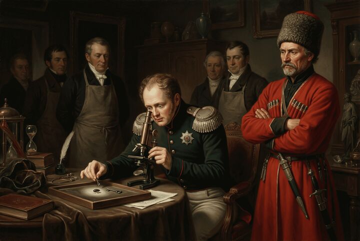 Англичане повели гостей в новую кунсткамеру, где хранились чудеса, собранные со всего света. Государь смотрел на различные диковинки, но, к радости Платова, ничему не удивлялся.