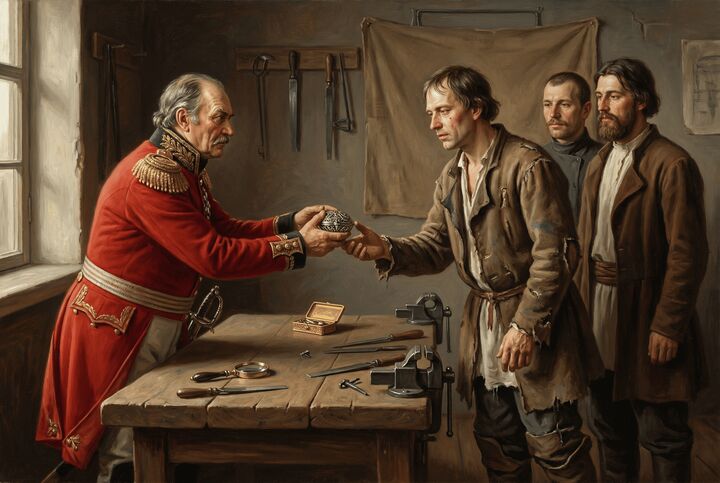 У мастеров был смелый замысел, в который Платов бы не поверил. Оружейники отвечали на вопросы казака уклончиво. Они сами ещё не знали, что предпринять, но надеялись на бога и обещали не подвести императора.
