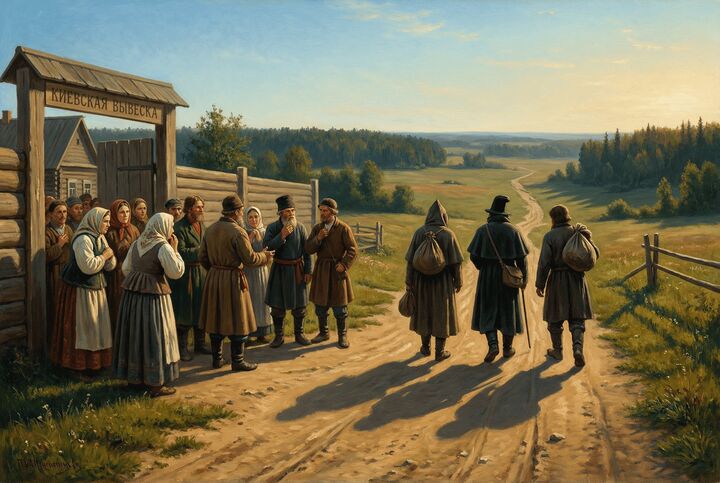Горожане заметили, что мастера отправились не в Московскую заставу, а в противоположную сторону — Киевскую. Это породило слухи, что оружейники отправились поклониться покойным угодникам и посоветоваться с кем-либо из живых святых отцов, которых в Киеве всегда было в избытке.