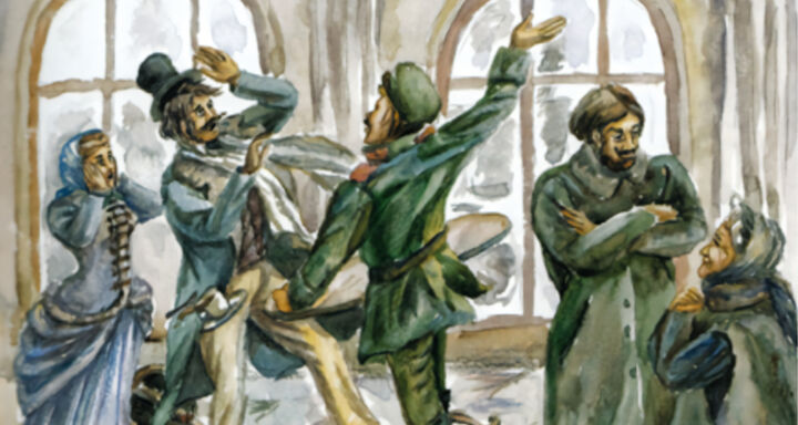 Все очень жалели старушку, но помочь никто не брался. Франт был должен половине Петербурга, и долги свои никогда не отдавал. Наконец старушка познакомилась с человеком, согласившимся ей помочь. Он назвал себя «гением» и запросил 500 рублей — 200 себе, и 300 своему помощнику. Тем временем должник со своей богатой дамою собрался в заграничное путешествие. Старушке пришлось довериться «гению». Тот нашёл какого-то «сербского сражателя», который подловил должника на вокзале в день отъезда и надавал ему оплеух. В дело вмешалась полиция. Франту пришлось представиться, и ему тут же вручили бумагу. Чтобы немедля выехать за границу, долг пришлось заплатить. Так старушкин помощник заслужил право считаться гением.