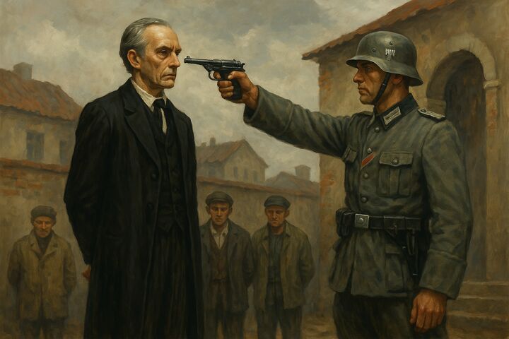 Выпускного вечера у десятиклассников в том году не было — началась Великая Отечественная война. Парней мобилизовали, а городок оккупировали фашисты. В первый же день они арестовали местных активистов: нотариуса, председателя сапожной артели и лесничего.