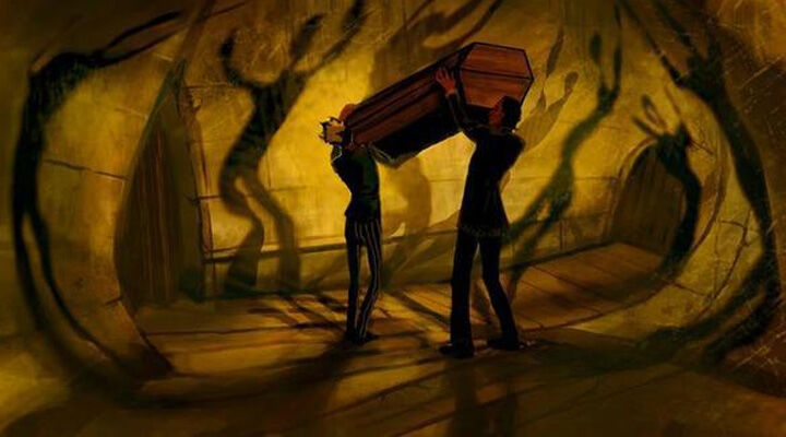 Человек хоронит свою сестру заживо. Взломав гроб, женщина возвращается из склепа за братом, и стены их дома рушатся, хороня страшное преступление под обломками.
