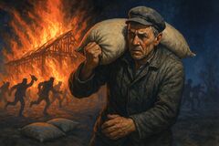 Петруха бегал между ними и рассказывал, что изба загорелась внезапно, а он чуть не сгорел заживо. Народ знал Петруху как облупленного и не верил ему. Только Хозяин видел, как Петруха поджёг родной дом, и чувствовал боль старой избы. После пожара Петруха исчез вместе с полученными за дом деньгами, а Катерина осталась жить у Дарьи.