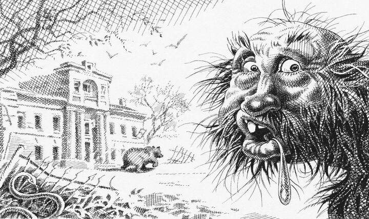 Между тем губернское начальство узнало, что мужик исчез, а на исправника человек-медведь напал, всполошилось и решило мужика на место водворить. Через губернский город как раз рой мужиков летел. Их собрали и в имение отвезли. Сразу на базаре мясо и хлеб появились, а в казне — деньги. Барина поймали, отмыли, высморкали и отобрали газету «Весть». Он и сейчас жив — раскладывает гранпасьянс, тоскует о дикой жизни, моется по принуждению и иногда мычит.
