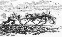 Коняге приходилось тяжело трудиться и жить на подножном корму. Его брат, который жил в тёплом стойле и ел не солому, а овёс, удивлялся, что Конягя не умер от такой жизни, а продолжает тянуть ярмо.