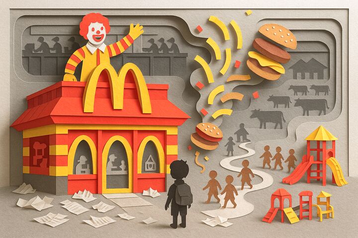 Рекламу фастфуда доносили до детей разными способами: с помощью радио, телевидения, плакатов, журналов, игрушек и многого другого. Но затем появилась новая ниша – рекламу ресторанов быстрого питания стали размещать в школьных коридорах. Основной упор был сделан на потребление газировки. В результате этой рекламной кампании потребление школьниками сладкой газировки увеличилось чуть ли не в три раза.