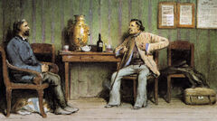 Как-то приехал я к нему летним вечером, после всенощной. После того, как Стегунов отпустил молодого священника, угостив его водкой, мы сели на балконе. Вдруг он увидел в саду чужих кур и послал дворового Юшку выгнать их. Юшка и ещё трое дворовых кинулись на кур, и пошла потеха. Выяснилось, что это куры Ермила-кучера, и Стегунов велел их отобрать. Потом разговор зашёл о выселках, которым отвели плохое место. Мардарий Аполлоныч сказал, что там живут опальные мужики, особенно две семьи, которые никак не удаётся извести. В отдалении я услышал странные звуки. Оказалось, это наказывали Ваську-буфетчика, который прислуживал нам за обедом.
