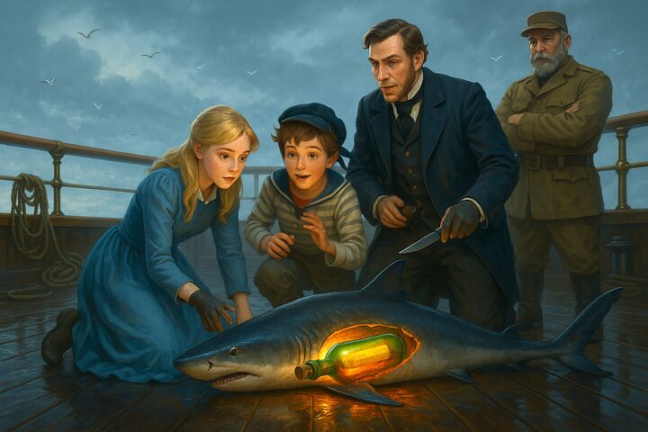 26 июня 1864 г. экипаж яхты «Дункан», принадлежащей лорду Эдуарду Гленарвану, виднейшему члену Королевского яхт-клуба Темзы и богатому шотландскому землевладельцу, вылавливает в Ирландском море акулу, в животе которой находит бутылку с запиской на трёх языках: английском, немецком и французском. В записке кратко сообщается, что во время крушения «Британии» спаслось трое — капитан Грант и два матроса, что они попали на какую-то землю; указывается и широта и долгота, но невозможно разобрать, какая это долгота — цифру размыло. В записке говорится, что спасённые находятся на тридцать седьмом градусе одиннадцатой минуте южной широты. Долгота неизвестна. Поэтому разыскивать капитана Гранта и его спутников надо где-то на тридцать седьмой параллели. Английское адмиралтейство отказывается снарядить спасательную экспедицию, но лорд Гленарван и его жена решают сделать все возможное, чтобы отыскать капитана Гранта. Они знакомятся с детьми Гарри Гранта — шестнадцатилетней Мэри и двенадцатилетним Робертом. Яхту снаряжают в дальнее плавание, в котором желают принять участие жена лорда — Элен Гленарван, очень добрая и мужественная молодая женщина, и дети капитана Гранта. В экспедиции также участвуют майор Мак-Наббс, человек лет пятидесяти, скромный, молчаливый и добродушный, близкий родственник Гленарвана; тридцатилетний капитан «Дункана» Джон Манглс, двоюродный брат Гленарвана, человек мужественный, добрый и энергичный; помощник капитана Том Остин, старый моряк, заслуживающий полного доверия, и двадцать три человека судовой команды, все шотландцы, как и их хозяин.