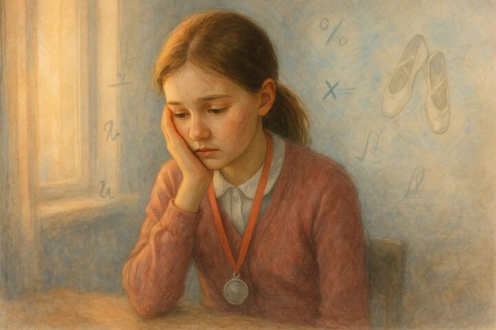 Школьница участвовала в олимпиаде и танцевальном конкурсе. Взрослые возлагали на неё большие надежды, но девочка не заняла первых мест. Наслушавшись упрёков, она стала считать себя неудачницей.